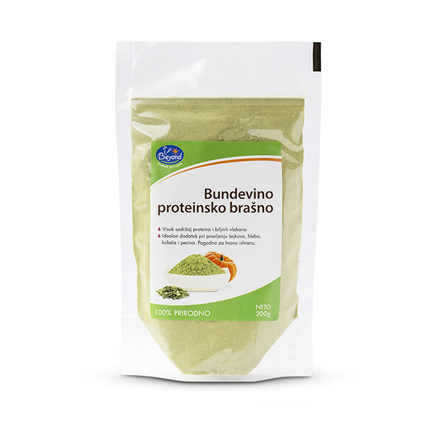 Bundevino proteinsko brašno dobijeno je mlevenjem semenki bundeve iz kojih je predhodno istisnuto ulje. Visok sadržaj proteina (58%) i biljnih vlakana (12%) čini ga nutritivno izuzetno vrednom namirnicom. Ima nizak sadržaj ugljenih hidrata i masti što je pogodno za sve one koji su na dijeti koja podrazumeva smanjenu upotrebu šećera i masnoća. Pogodno za hrono ishranu.