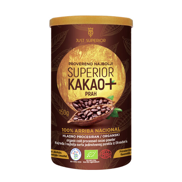 100% organski kakao prah iz Ekvadora sa 20-25% kakao masti. Kakao prah Arriba Nacional je specijalna sorta kakaoa iz Ekvadora, prefinjene arome, koji se već decenijama proizvodi na malim sertifikovanim organskim plantažama, gde se ručno kontroliše i biraju najbolja zrna. Kakao prah je jedan od najbogatijih izvora magnezijuma, zatim bakra, hroma, kalcijuma, mangana, molibdena i cinka.