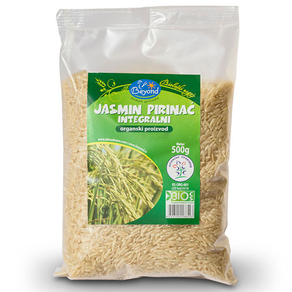 Jasmin pirinač je posebno fini pirinač, srednje veličine zrna, poreklom sa Tajlanda. Jasmin integralni pirinač organski ima prijatan miris (na jasmin). Kuvana zrna su meka, lepljiva i vlažna. Prirodni je izvor vitaminima B kompleksa koji su nephodni za dobro funkcionisanje nervnog sistema i minerala kao što su kalijum i fosfor. Prirodni je izvor dijetetskih vlakana.